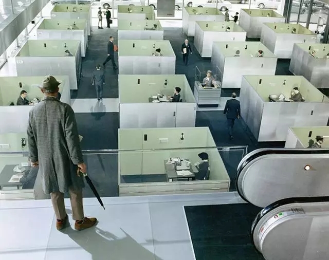 電影《玩樂時(shí)間》中的鏡頭,壓抑封閉的辦公空間曾被認(rèn)為是限制創(chuàng)造力的原因