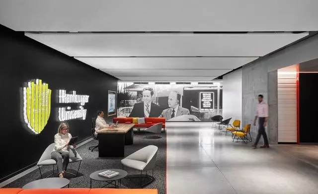 麥當(dāng)勞的新總部被設(shè)想為企業(yè)總部的一部分,以及部分文化中心,學(xué)校和歷史博物館。IA室內(nèi)建筑師設(shè)計(jì)的經(jīng)典工作區(qū)和會(huì)議室與O+A工作室設(shè)計(jì)的工作區(qū)互動(dòng),具有酒店場(chǎng)所的外觀和感覺(jué)。根據(jù)設(shè)計(jì)團(tuán)隊(duì)的說(shuō)法,每個(gè)建筑手勢(shì)都可以獨(dú)立運(yùn)作,并與周?chē)目臻g合作。