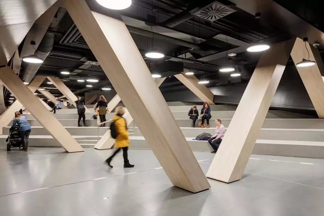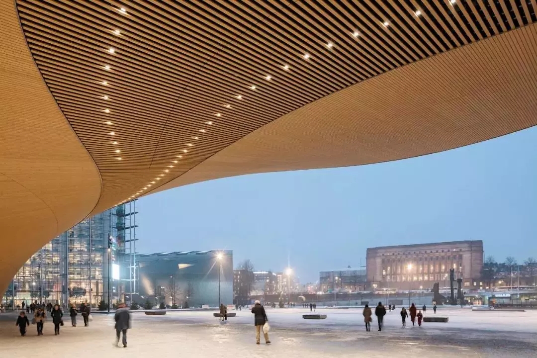 但其實(shí)據(jù)設(shè)計(jì)頌歌的主建筑師之一南安迪(Antti Nousjoki)講,靈感的出發(fā)點(diǎn),還是在于考慮它的功能。作為一個(gè)地處赫爾辛基市中心,毗鄰熱鬧商圈、火車站和美術(shù)館的公共空間,能夠給市民們帶來什么樣的服務(wù)?又能填補(bǔ)哪些缺失的城市設(shè)施?
