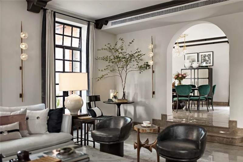 從建筑外觀到室內(nèi),拱門(mén)設(shè)計(jì)無(wú)疑是空間中最引人注目的亮點(diǎn),經(jīng)典的幾何線(xiàn)條在空間交匯處劃下瀟灑自由的一筆,破格又落定,促成雙空間的融合。皆因設(shè)計(jì)師黃全對(duì)細(xì)節(jié)的一絲不茍,每一個(gè)構(gòu)件都在美學(xué)態(tài)度的牽引下找到最合適的表現(xiàn)形式。