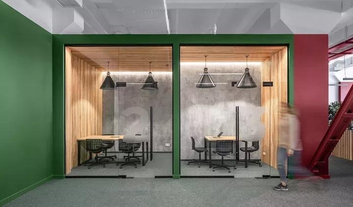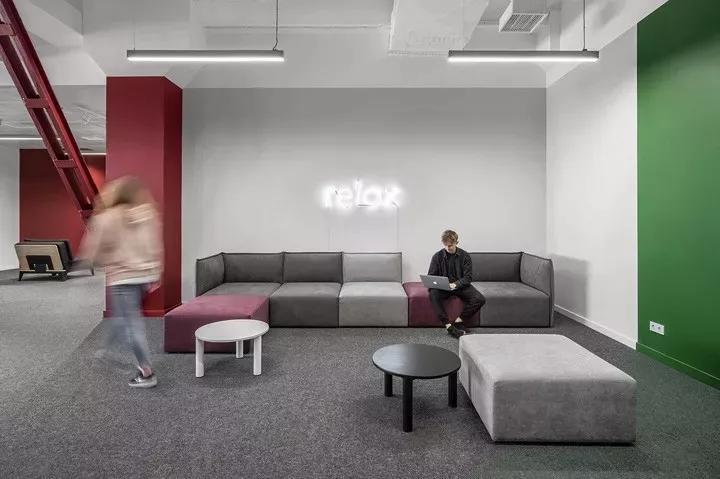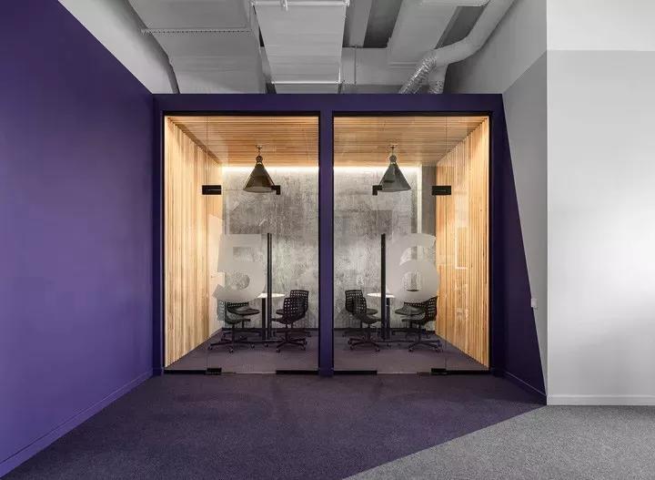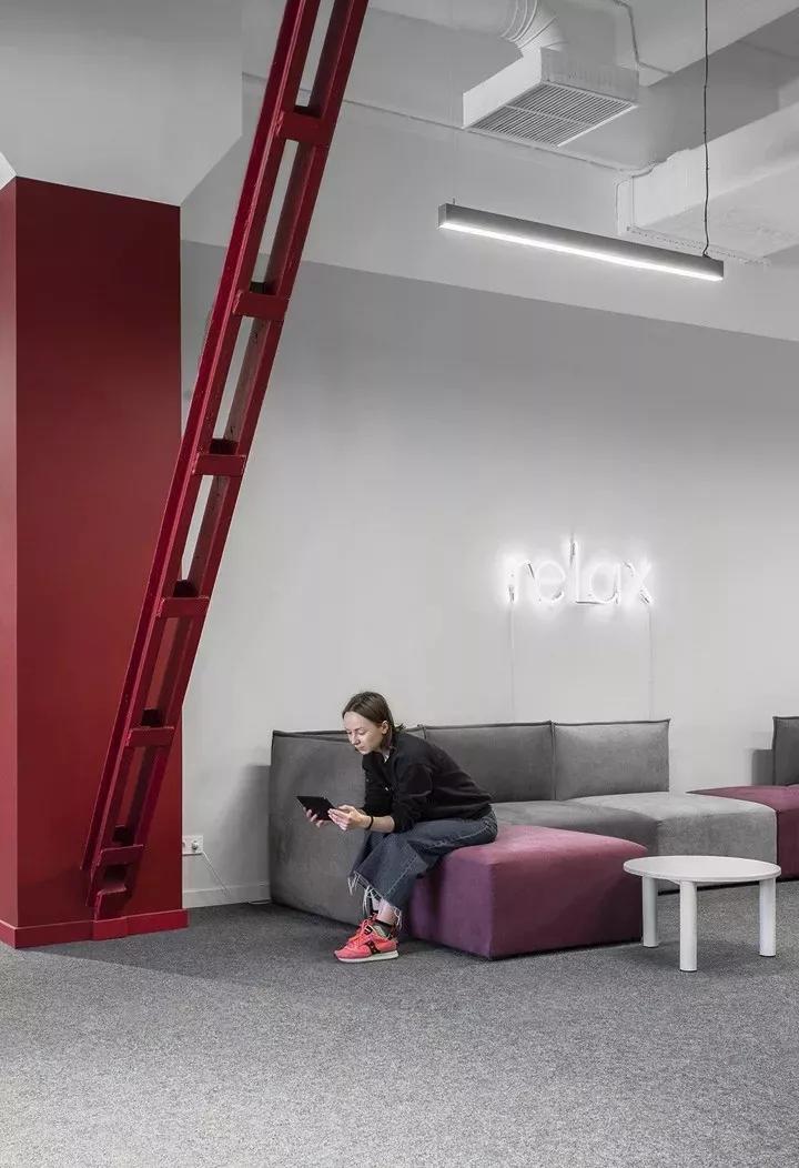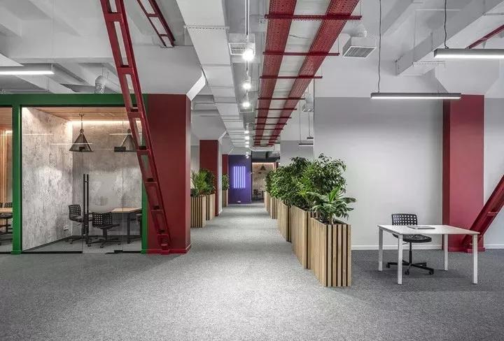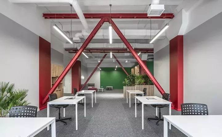 辦公室裝修設(shè)計(jì)團(tuán)隊(duì)保留了建筑的工業(yè)風(fēng)質(zhì)感,并以對角桁架強(qiáng)化這一設(shè)計(jì)美學(xué)。同時(shí)根據(jù)公司年輕而活力的文化和品牌色彩,以極簡的設(shè)計(jì)語言配以強(qiáng)烈的色彩構(gòu)成創(chuàng)建出一個(gè)獨(dú)具時(shí)尚品味、且令人印象深刻的美學(xué)空間。
