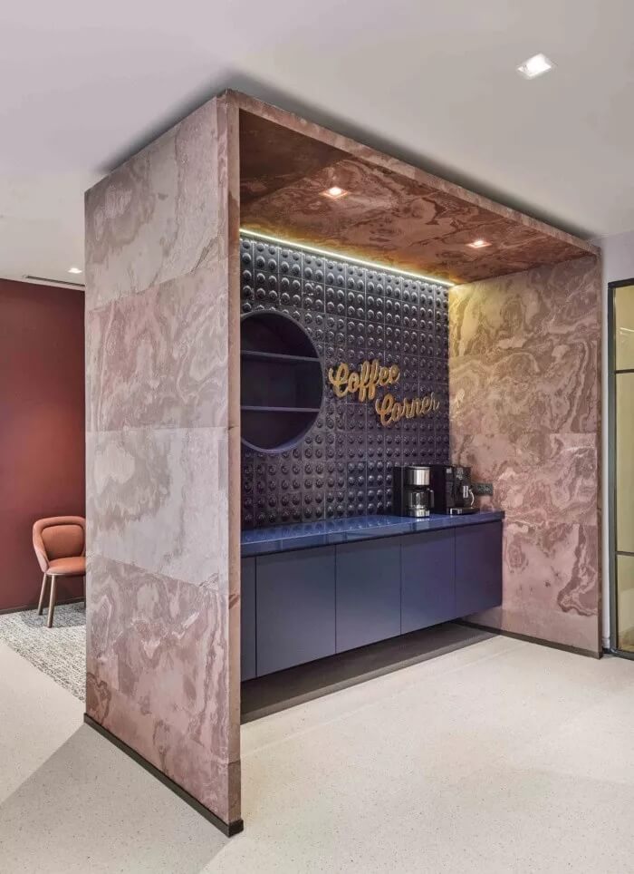 巧克力學院作為該項目的重要組成部分,其設計目的是讓每位客人都能在進入Barry Callebaut Istanbul時,被其獨特的魔力所俘虜。于是,這個美麗的色彩,鼓舞人心的形狀,優(yōu)雅的款待 - 就被抽象出來,為辦公室裝修營造出別致的建筑環(huán)境。擁有色彩繽紛,令人驚嘆的空間,捕捉其最重要產品 - 巧克力的精華,優(yōu)雅和美味。