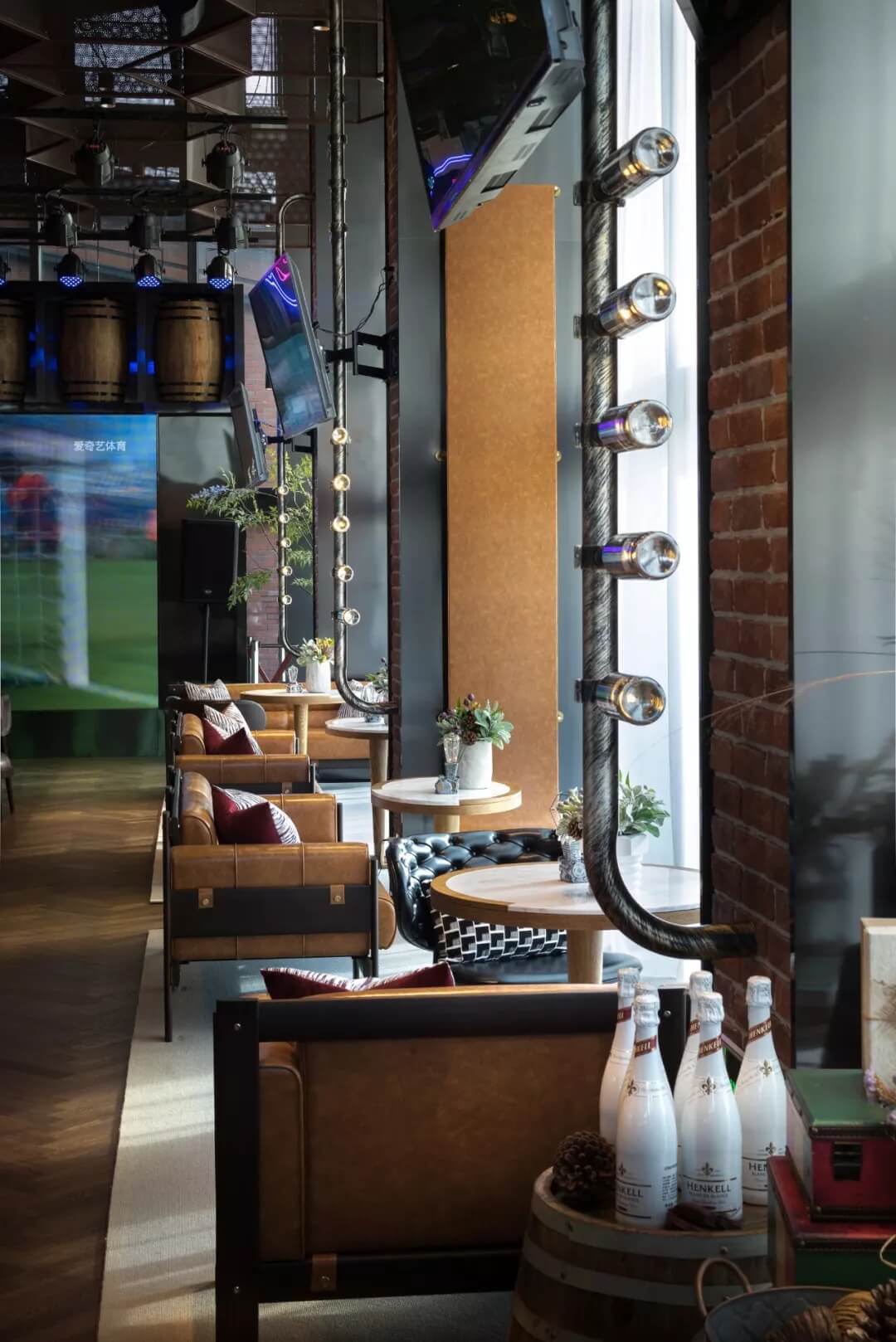 樂尚設(shè)計擔(dān)綱本案室內(nèi)及軟裝設(shè)計,以國際化、多元化的設(shè)計詮釋風(fēng)格定位,在手法上提煉工業(yè)風(fēng)的構(gòu)件元素,“工業(yè)風(fēng)的形式與氣質(zhì)融注其中,自然的生態(tài)美亦盡數(shù)納入,粗獷與細(xì)膩在映襯中的美學(xué)意義更臻完滿,設(shè)計的意旨得以實現(xiàn),營造出俱樂部看球賽現(xiàn)場的濃郁氛圍感。”