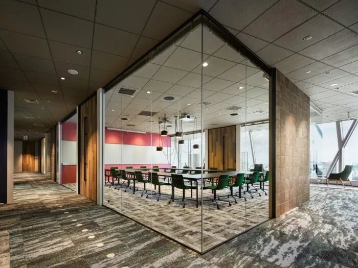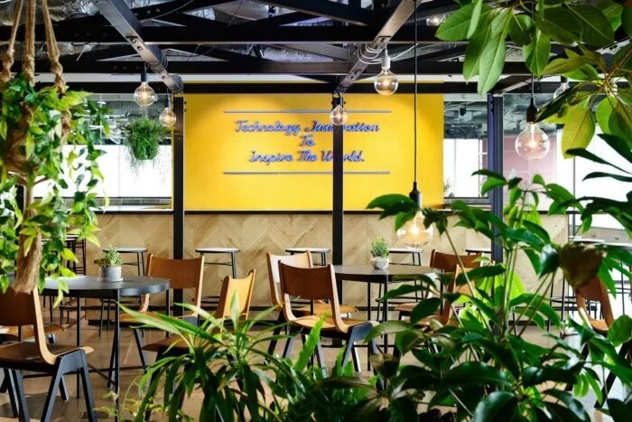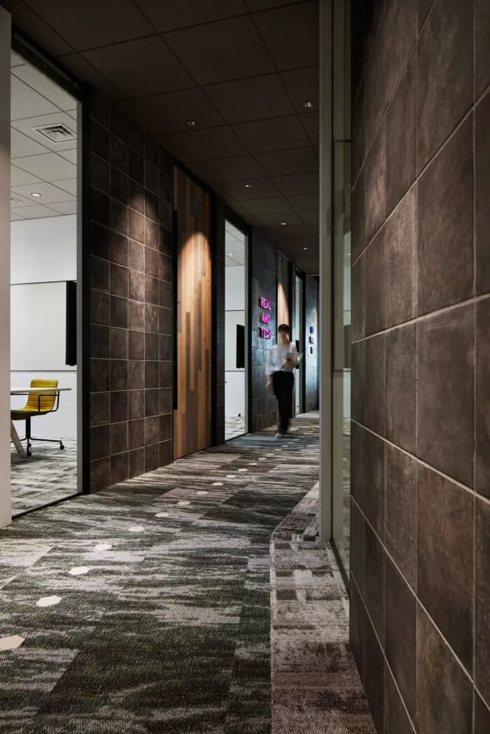 為此,設(shè)計(jì)團(tuán)隊(duì)的目標(biāo)是讓辦公室成為一個(gè)人們隨便可以咨詢房地產(chǎn)相關(guān)資訊的地方。入口處有許多綠植,寬敞的空間看起來比起居室還要舒服。辦公室配備了帶有防污圖案的框架,復(fù)古吊燈和帶有當(dāng)下流行風(fēng)格的霓虹燈標(biāo)注,徹底改變房地產(chǎn)公司的傳統(tǒng)形象??臻g約有3300平方米,擁有20多件會(huì)議室,員工使用的公共空間介于工程師和代理商空曠的工作間之間。