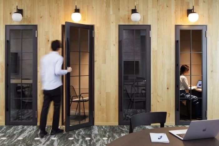 許多在GA工作的技術(shù)人員都屬于千禧一代,他們褒獎(jiǎng)多元化。為了使他們更加愉快地工作,設(shè)計(jì)團(tuán)隊(duì)為工作空間打造了一個(gè)盡肯能尊重個(gè)人工作方式的環(huán)境。為此,在他們大桌子旁邊加了一臺(tái)咖啡機(jī),私人專屬工位、大豆袋為專注工作的人員而設(shè)。