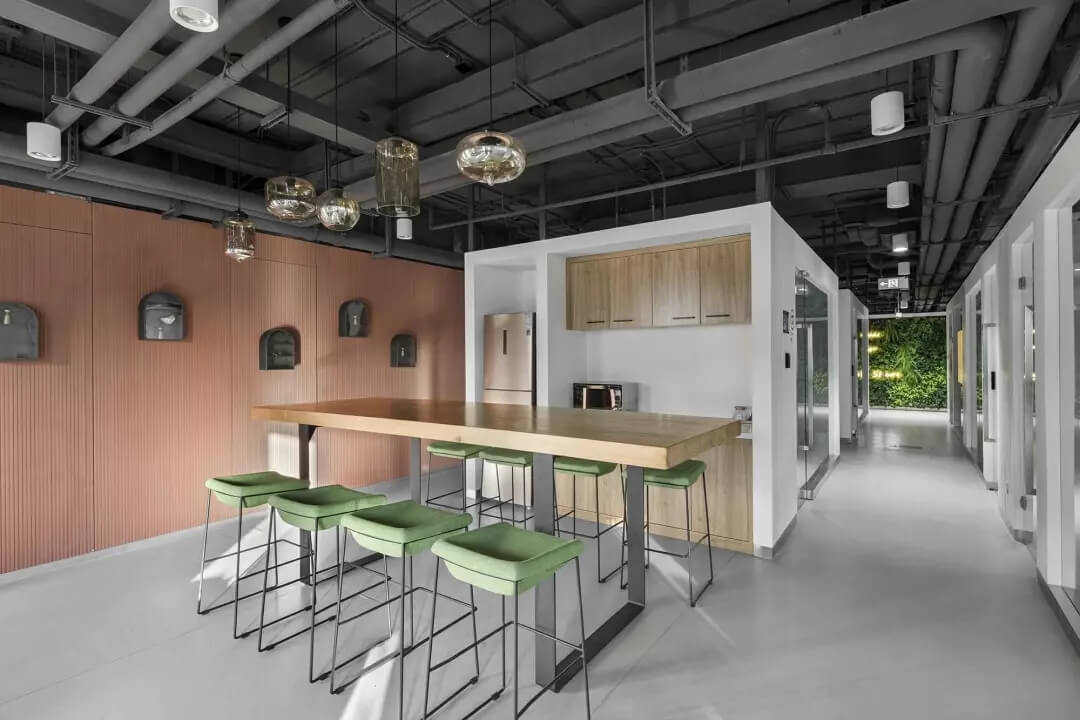 在空間劃分上,我們遵循城市綠色生態(tài)美學(xué),充分利用創(chuàng)新技術(shù)進行模塊化設(shè)計,將裝配式建造、節(jié)能低碳等許多新理念應(yīng)用到整個空間中去,將整體空間劃分成商務(wù)區(qū)、辦公區(qū)和休閑區(qū),具體到擁有獨立辦公室65個,辦公工位464個,會議室5個,以及水吧、咖啡廳、休息艙、茶室、電話亭等共享區(qū),我們想要脫離傳統(tǒng)辦公空間的單調(diào)枯燥,讓一站式的休閑服務(wù)和辦公完美結(jié)合,觸達現(xiàn)代人內(nèi)心的深層需求,從而使整體設(shè)計方案在保持高品質(zhì)的同時做到高效、低成本。