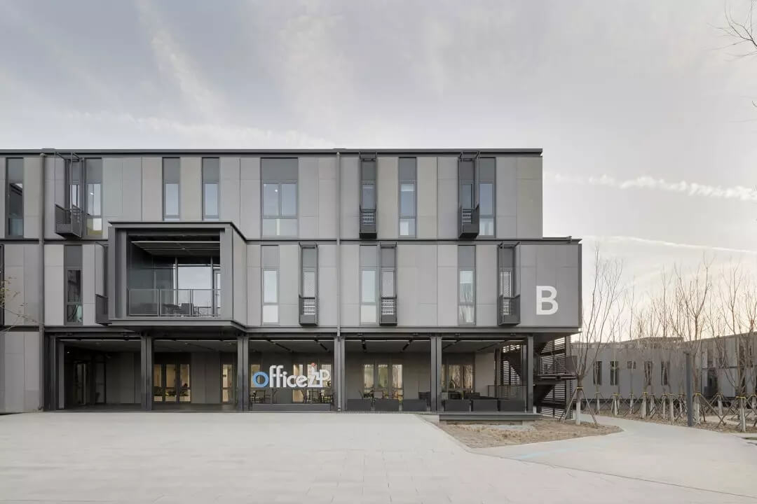 在雄安市民服務(wù)中心這塊占地面積廣達9.96萬平方米的新生沃土上,有序林立著公共服務(wù)區(qū)、行政服務(wù)區(qū)、生活服務(wù)區(qū)、入駐企業(yè)辦公區(qū)四大建筑群落。而當(dāng)落眼于其中入駐企業(yè)辦公建筑群落中的B棟Officezip時,不禁感受到從內(nèi)而外綻放著的生態(tài)綠意。