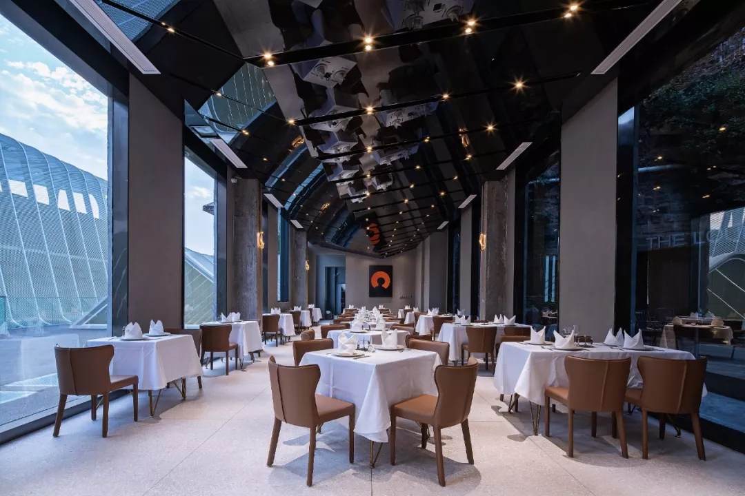 薄殼結(jié)構(gòu)與金屬幕墻構(gòu)成的“裙擺”創(chuàng)造出一層集合酒店接待、休憩與多功能廳的開(kāi)放服務(wù)空間,漂浮為頂,下落為幕,抬升為廳,下沉為梯,旅客可以在裙擺之上游走,形成一條多變的觀景路徑,還原了山城的空間體驗(yàn)。