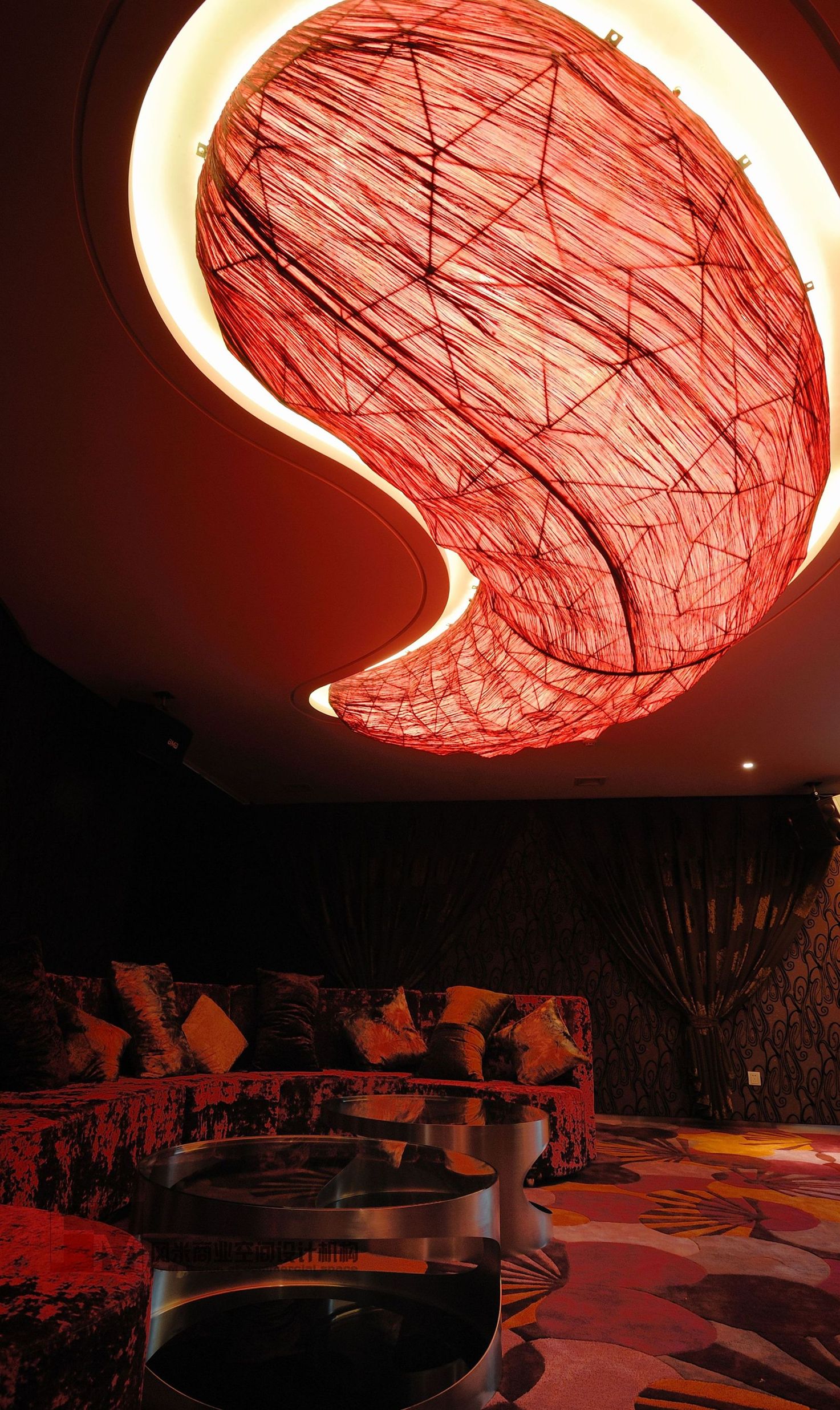 現(xiàn)代人的價值觀是一個在顛覆中發(fā)展的時期,人們的觀念在顛覆,消費的觀念亦在成熟中顛覆。所以在這次設(shè)計中我們要通過另一種美學設(shè)計手法再一次顛覆人們的審美價值觀。在設(shè)計中空間內(nèi)以超出常規(guī)的比例關(guān)系的形態(tài)來表露意識形態(tài)。在材料排布上以非慣性的處理手法來獲得人們對新形餐飲空間的認知,在色彩運用上以單體空間的色相統(tǒng)一來刺激人們對空間的色彩印象,在家具的造配上追求戲劇化的高度,奢華夸張的概念。使空間在整體上達到一種戲劇化的舞臺效果,讓人們游走其中產(chǎn)生一種非常規(guī)概念的心理感受,從而感受到空間的美感。